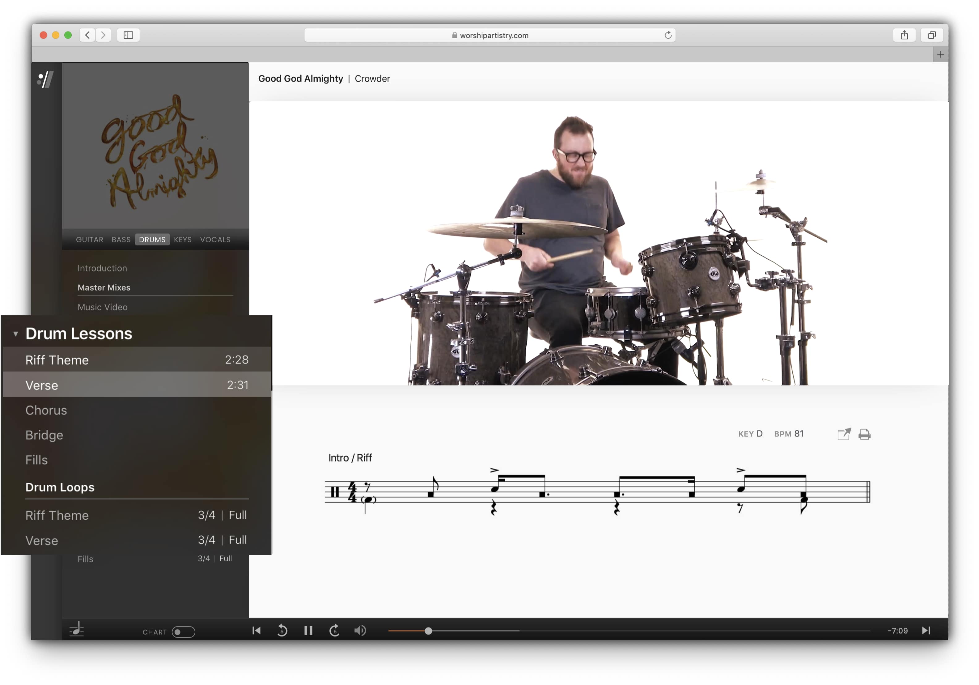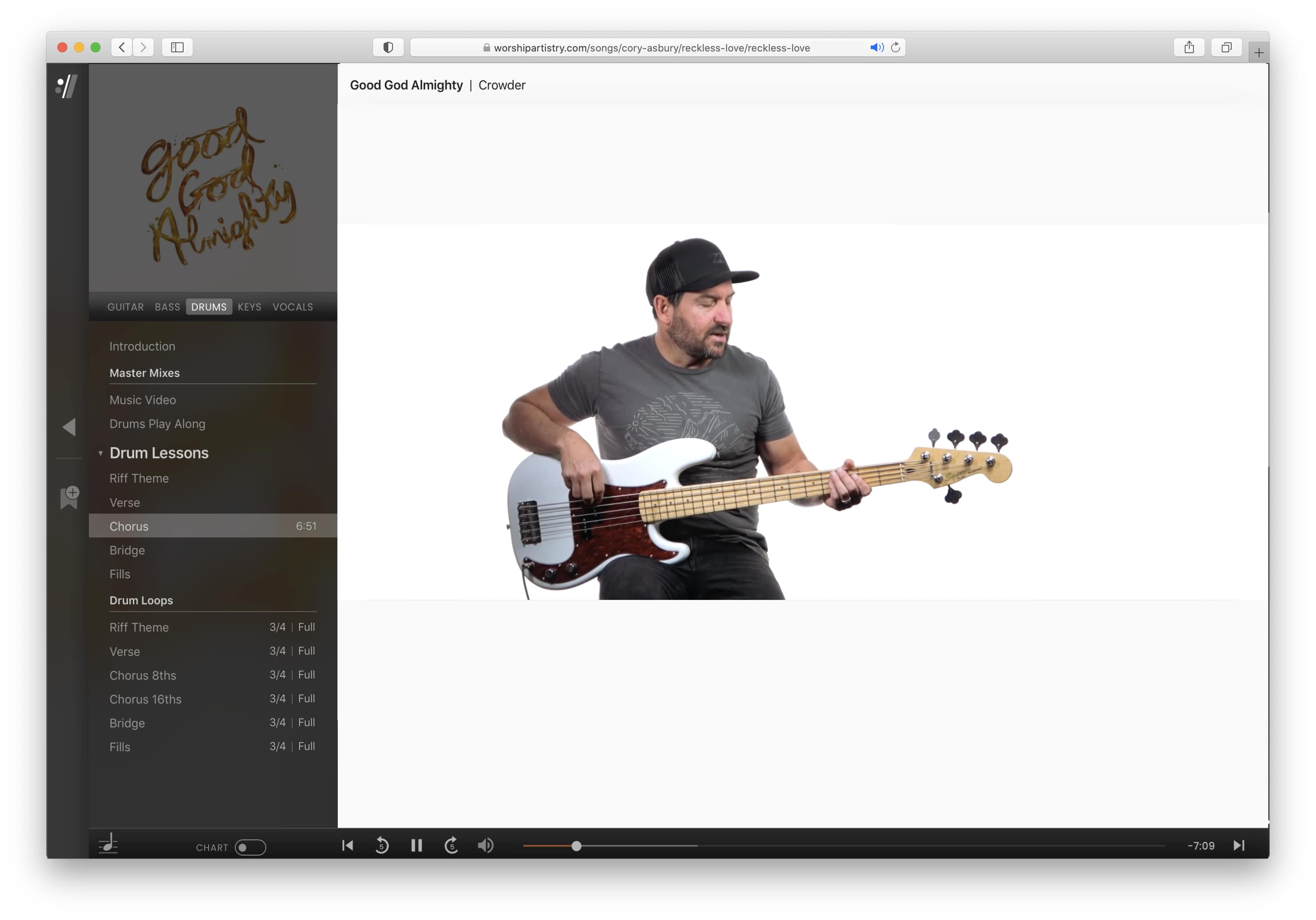 Practice with our band so you can play with yours. With detailed teaching, music videos and multiple speed practice loops, you've got everything you need to drive the band.