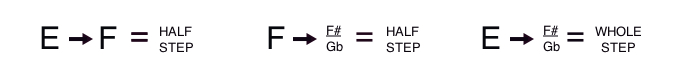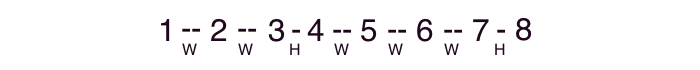 "Whole step, whole step, half step, whole step, whole step, whole step, half step"