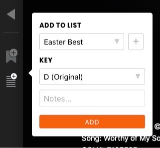 2. From here, you can either add it to a new list or an existing list, and select your preferred key. Add any specific notes for your team about the song.
