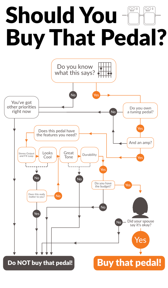It's easy to get amped up about buying pedals but should you drop your hard earned cash on it? I've created this handy flowchart to help you decide.
