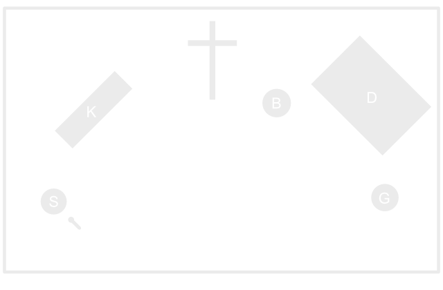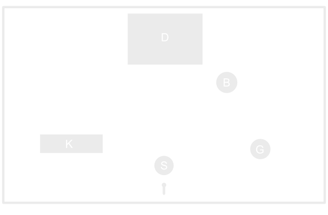 The typical rock band setup is singer in the front, guitarist to their left, keyboardist on the right and then bass player in the back next to the drummer. It looks something like this: