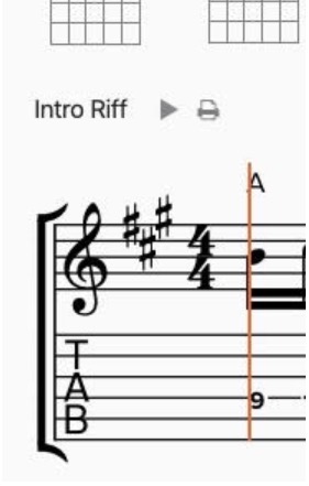 Once you have the sheet music and tabs changed to your desired key, you can now see the new notes to play. If you want to hear the tones of those notes, simply hover over that section of the song and you’ll see the play arrow and print icon show up. Now, if you play the tab or sheet music with the play arrow, you’ll hear the tones in the new key as it follows the orange bar, but it’s an electronic sound. If you’d like to play along with these tones, this is a great place to start.